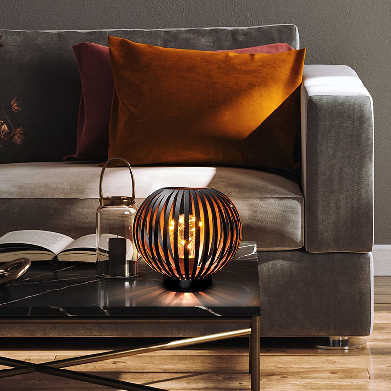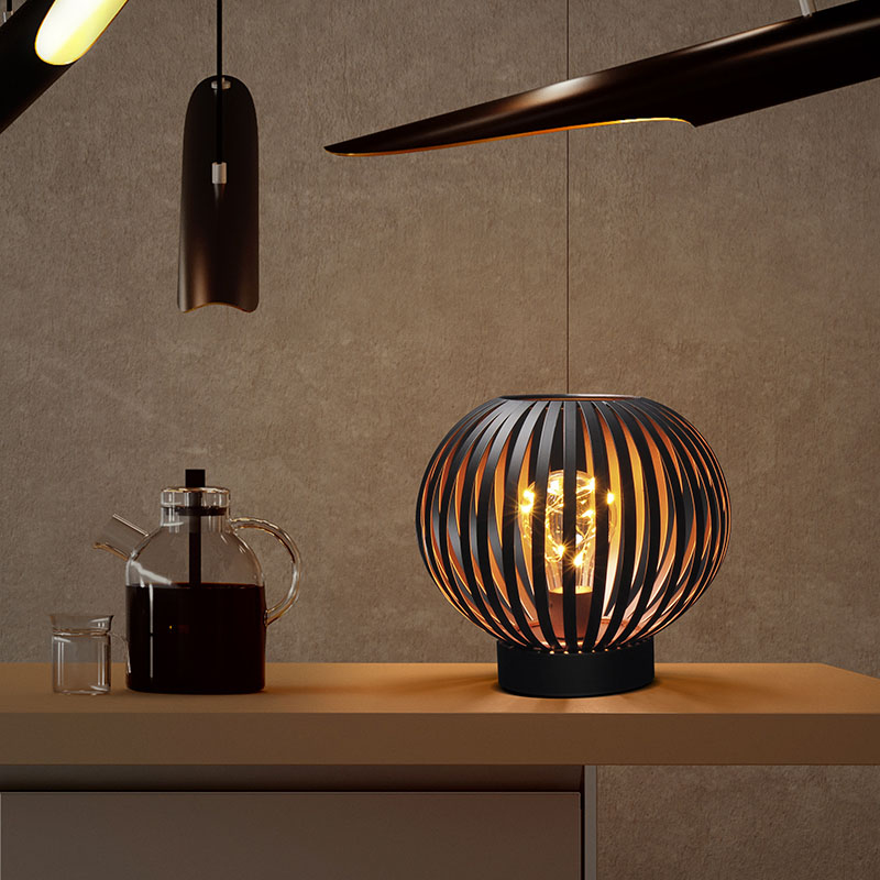 - dekoratívny kovový lampáš s žiarovkou s micro LED