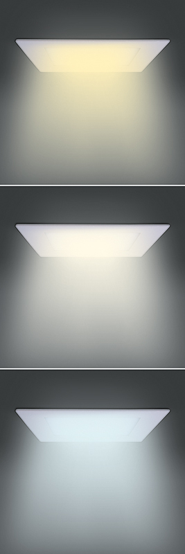 - panel disponuje špeciálnym LED zdrojom s prepínačom, ktorý umožňuje nastavenie teploty svetla (chromatickosti) 3000K, 4000K alebo 6000K