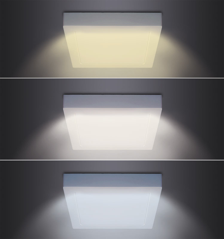 - panel disponuje špeciálnym LED zdrojom s prepínačom, ktorý umožňuje nastavenie teploty svetla (chromatickosti) 3000K, 4000K alebo 6000K