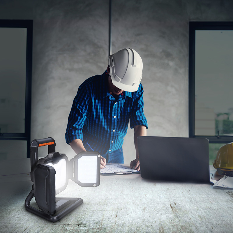 - prenosný, nabíjací a polohovateľný LED reflektor