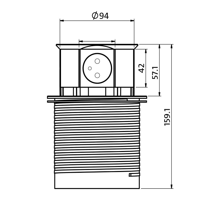 - výška výsuvnej časti nad stolom: 58mm; výška časti pod stolom: 100mm