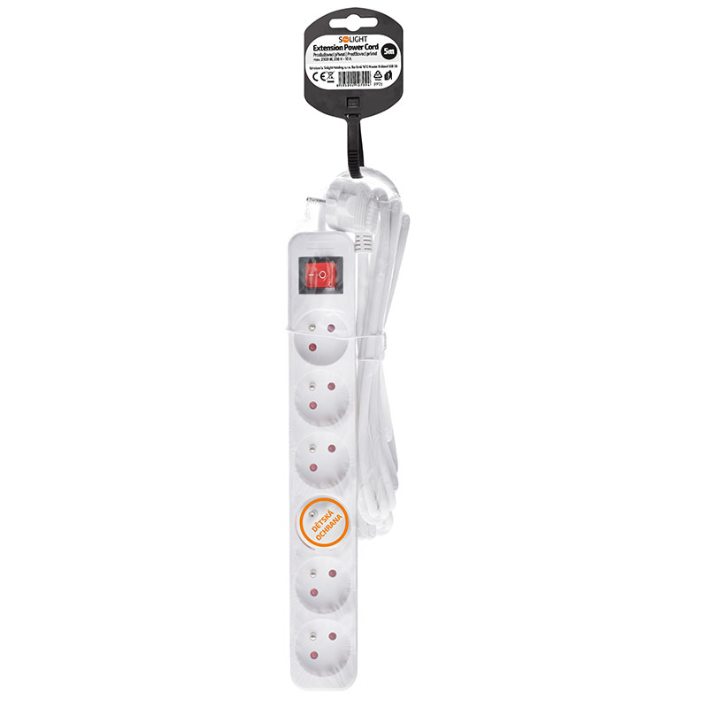 Praktický biely predlžovací kábel s dĺžkou 5 metre a šiestimi zásuvkami umožní priviesť elektrickú energiu tam, kde nie je k dispozícii pevná zásuvka. Podsvietený vypínač umožňuje pohodlné ovládanie všetkých pripojených zariadení. Ideálny pre domáce aj kancelárske využitie.
