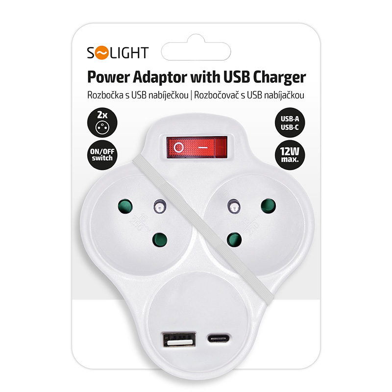 - USB nabíjací adaptér 2,4A max., USB výstupy 1x Typ-A + 1x Typ-C