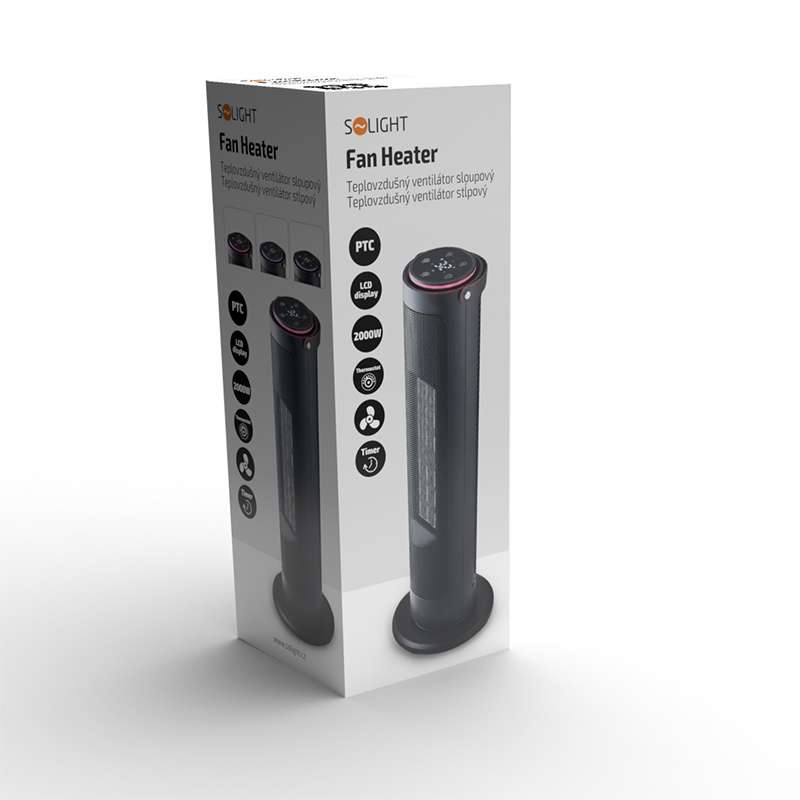 - režimy: ventilátor pre cirkuláciu vzduchu, nízky ohrev, vysoký ohrev, ECO