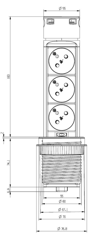 - dve polohy vysunutia - iba USB alebo všetky zásuvky