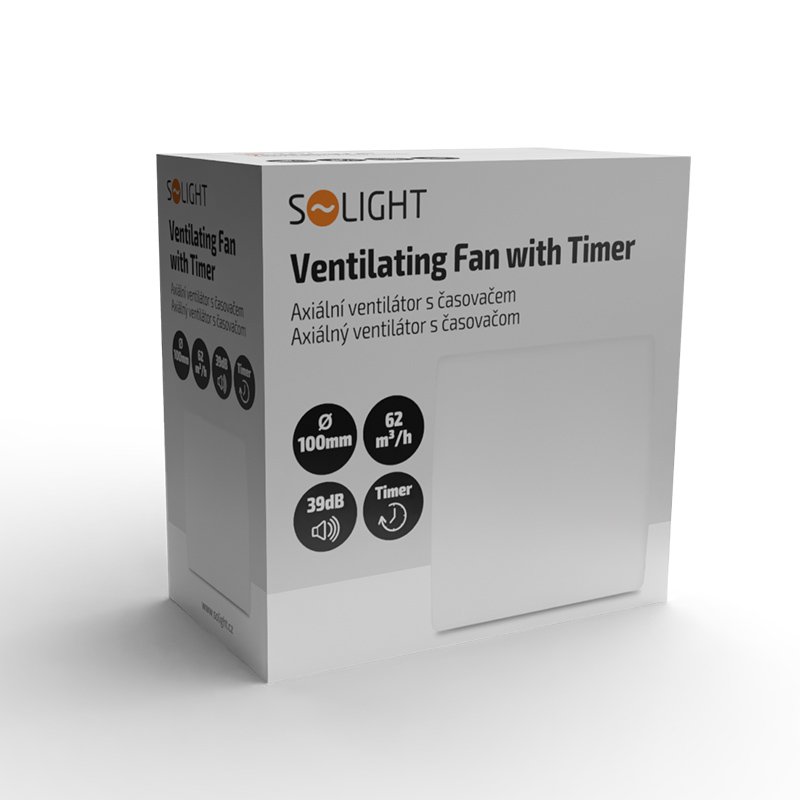 Ventilátor Solight AV06T je navrhnutý na efektívne odvetrávanie priestorov, ako sú sprchy, kuchyne, kúpeľne a WC. Jeho kompaktný dizajn s priemerom pripojenia 100 mm a hlučnosťou 39 dB zabezpečuje tichú prevádzku. Príkon je 13 W a prietok vzduchu dosahuje 62 m3/h. Pre zabezpečenie optimálneho odvetrávania je možné dokúpiť spätnú klapku (AV-K01). Napájanie je 230 V/50 Hz.