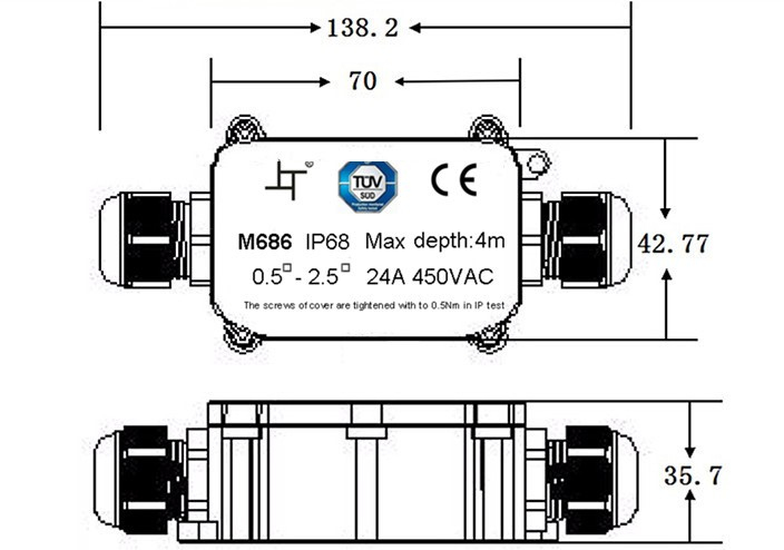 - vodotesná prepojovací krabička slúžiace na prepojenie dvoch a trojžilových vodičov