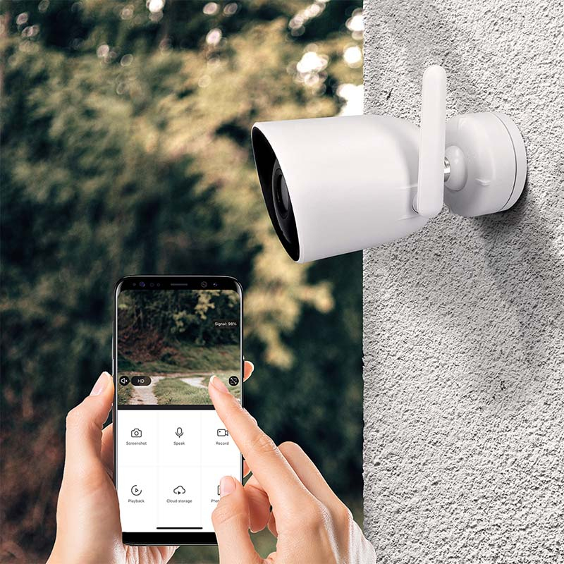 - S vonkajšou kamerou 1D79 môžete kontrolovať svoj dom a majetok takmer odkiaľkoľvek. Jednoducho vytiahnite telefón alebo tablet a sledujte svoj dom kdekoľvek, kde ste pripojení na internet. Kamera je napájaná zo zdroja energie, takže ponúka živé vysielanie 24 hodín denne, 7 dní v týždni. Alebo prijímajte upozornenia na mobilnom zariadení v okamihu, keď kamera zaznamená pohyb, a zobrazte si video v mimoriadne veľkom rozlíšení 1440p (2K QHD).