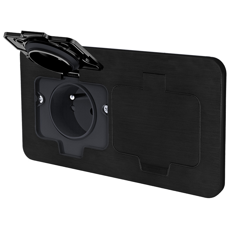 Táto jednoduchá zásuvka s krytím IP55 je ideálnou voľbou pre interiéry aj exteriéry. Spája funkčnosť, bezpečnosť a moderný dizajn v elegantnej matnej čiernej farbe, ktorá dokonale ladí s tmavými kuchynskými doskami, moderným nábytkom alebo vonkajšími priestormi, ako sú terasy, pergoly, okolie bazénov či fasády domov. Robustná konštrukcia umožňuje zabudovanie do podlahy, pod omietku alebo do nábytku. Vysoká odolnosť voči vode a nečistotám - krytie IP55 chráni pred striekajúcou vodou a prachom, čo umožňuje bezpečné používanie aj v náročných podmienkach.