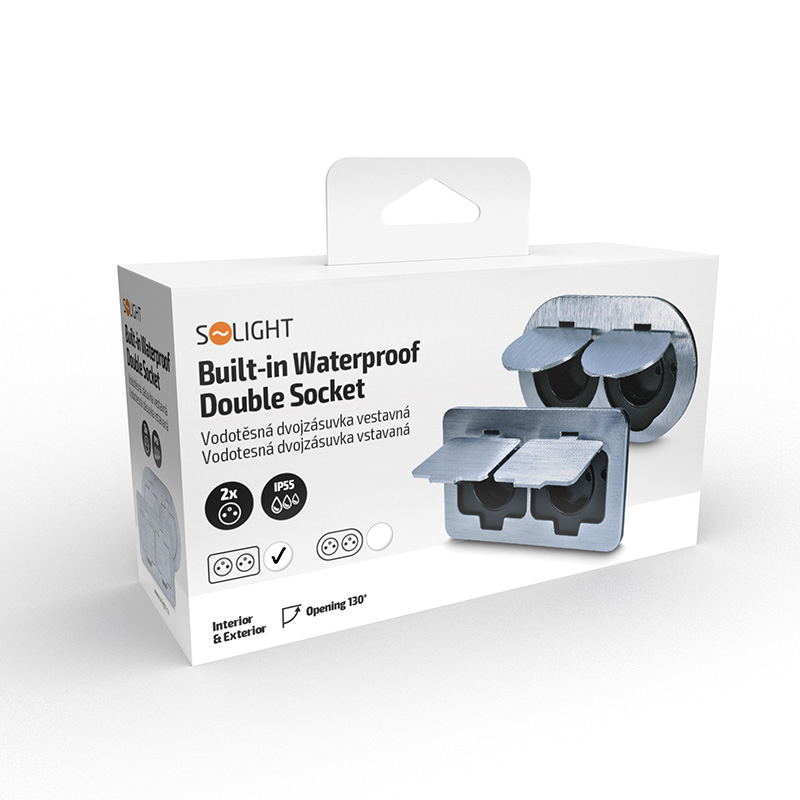 - zásuvka dvojnásobná uzemnená 2x (2P+E), obdĺžnikový tvar
