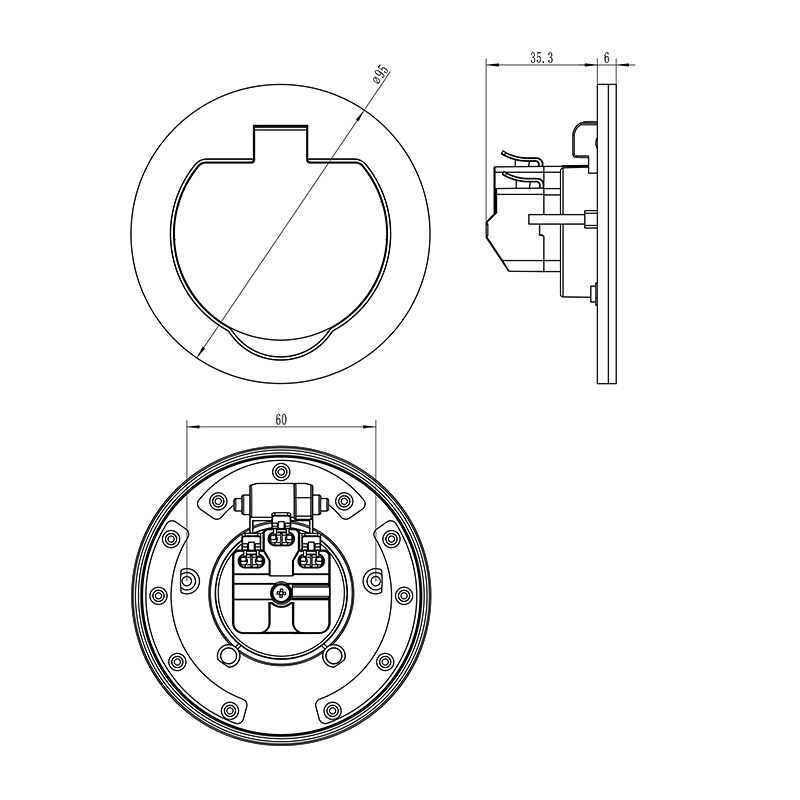 - zásuvka jednoduchá uzemnená 2P+E, okrúhly tvar