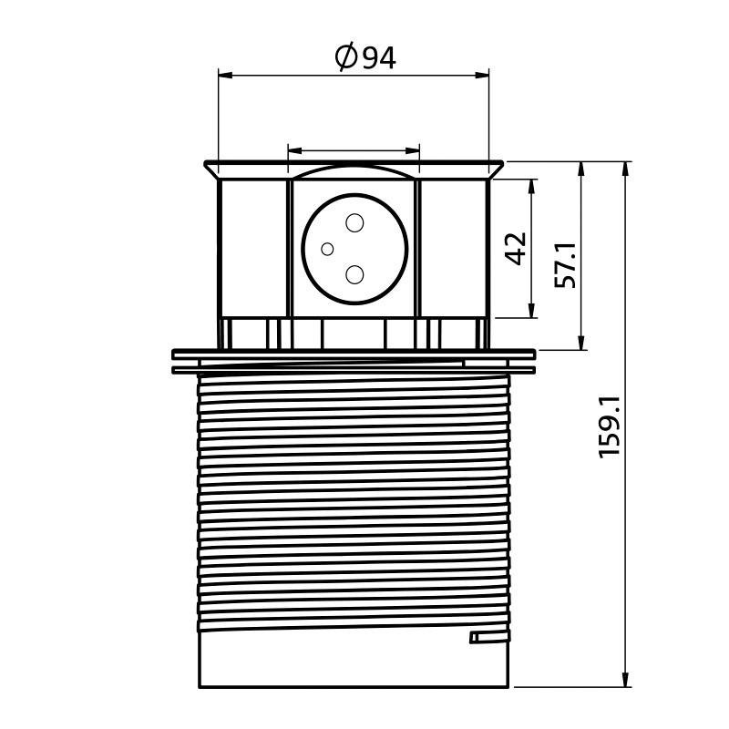 - výška výsuvnej časti nad stolom: 58mm; výška časti pod stolom: 100mm