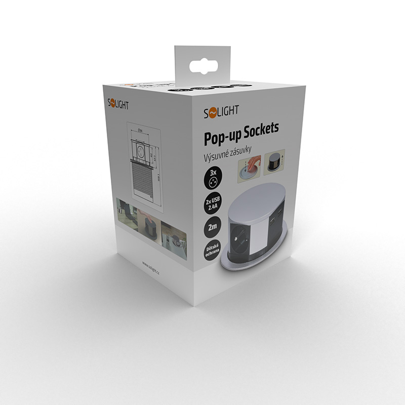 - počet zásuviek: 3x 10A + 2x USB max. 2400mA
