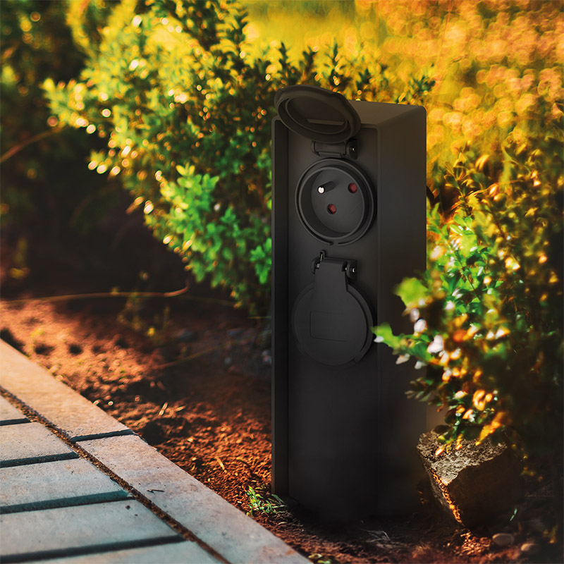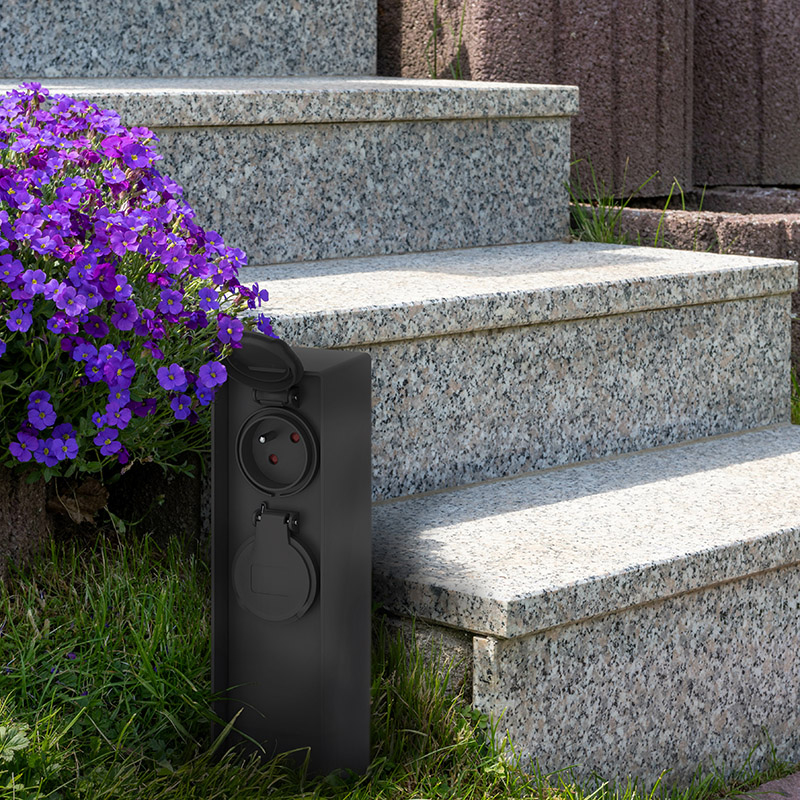 - 2 zásuvky max. 16A, 3680W, detské poistky a samouzatvárateľné krytky proti vlhkosti a prachu