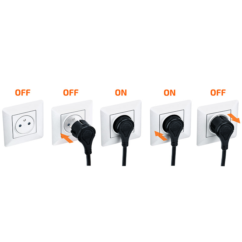 - posuvný stred ako vypínač prívodu elektrickej energie. Zásuvka je odpojená od elektrického obvodu kým nedôjde k zatlačeniu pohyblivého stredu do obvodového krytu. Prívodná šnúra zostane zapojená v zásuvke, prepojené kontakty sú istené západkou. Opätovným zatlačením na stred dôjde k uvoľneniu západky a vysunutiu pohyblivého stredu k povrchu zásuvky. Elektrický obvod je rozpojený, zásuvka vypnutá, prívodná šnúra zostáva zastrčená. Maximálna bezpečnosť a ochrana, navyše zvýšená detskými poistkami.
