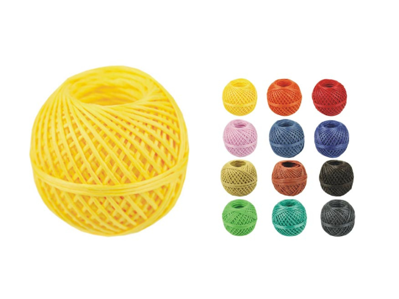 Motúz vhodný k bežnému baleniu tovaru v obchodoch a domácnostiach. Vyrobený z polypropylénu. Materiál: PP Návin: 20 000 mm Farby: žltá, oranžová, červená, ružová, modrá, fialová, svetlo hnedá, tmavo hnedá, čierna, svetlo zelená, tmavo zelená, šedá Mix 12 farieb podľa skladových zásob. Uvedená cena je za 1 ks.