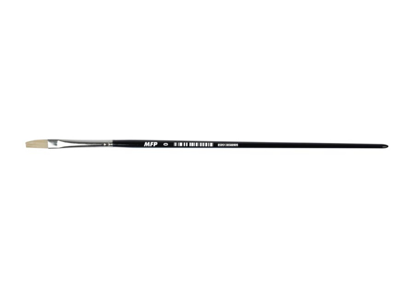 Školský štetec plochý, vhodný na hodiny výtvarnej výchovy, ale i na domácu kreatívnu tvorbu. Veľkosť: 0 Farba: čierna Materiál: prasacie štetiny POUŽITIE: Na maľbu vodovými a temperovými farbami, na vykresľovanie rôznych plôch na papieri, na maľovanie na kamienky. Štetce sú uložené v papierovej škatuli po 12 ks. Uvedená cena je za 1 ks.