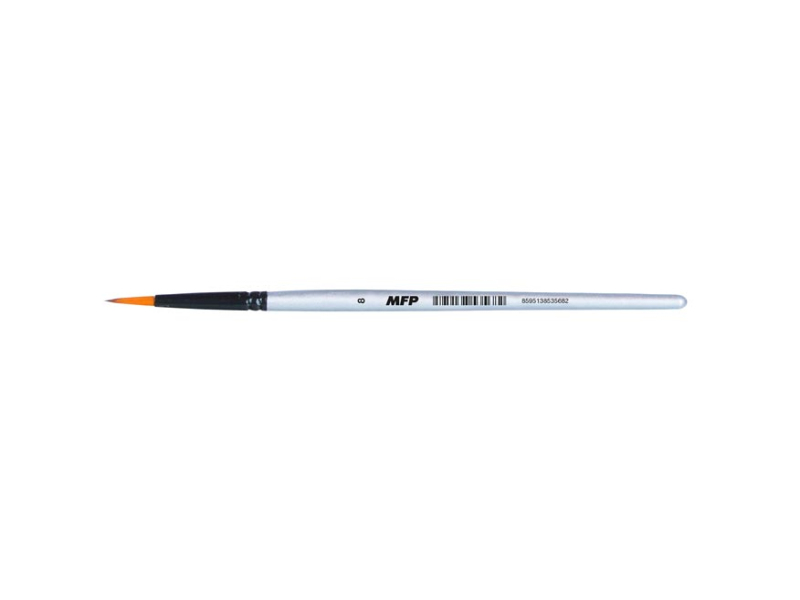 Guľatý štetec s jemnými syntetickými vlasmi tvarovanými do špičky a drevenou rukoväťou. Vďaka syntetickým vláknam sa farba ľahko rozotiera a dobre drží tvar. Je menej náchylný na poškodenie farbami a riedidlami ako prírodný štetec. Ľahko sa udržiava v čistote. Vhodný na použitie v škole, ako aj na rôzne maliarske techniky. Ideálny na maľovanie detailov, línií alebo vyfarbovanie. Štetiny sú chránené plastovým uzáverom. Veľkosť: 8 Farba: strieborná/čierna Materiál: syntetické vlákno POUŽITIE: Na maľovanie akrylovými a akvarelovými farbami. Štetce sú uložené v papierovej škatuľke po 12 ks. Uvedená cena je za 1 ks.