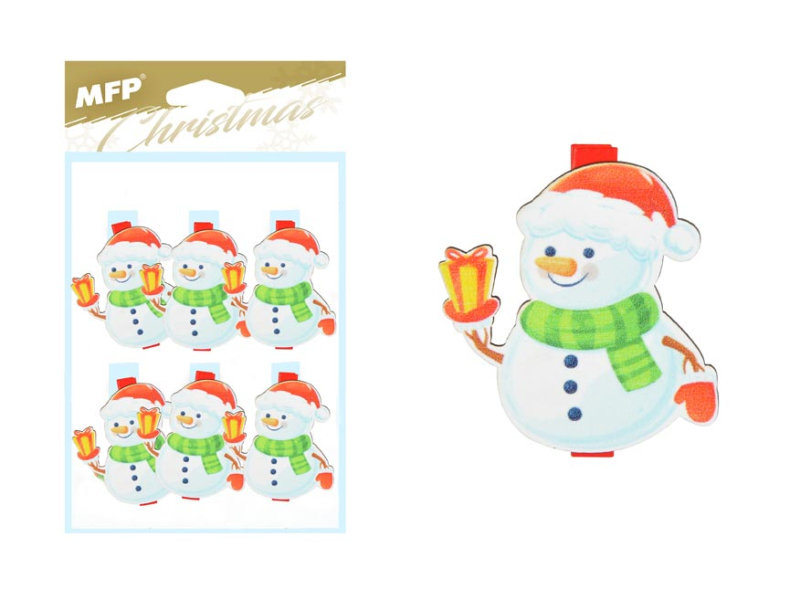 Vianočná, drevená dekorácia so snehuliakom. Plánujete si pred Vianocami urobiť tvorivé relaxačné popoludnie a vyzdobiť si byt? Potom určite neváhajte a kúpte si tieto krásne drevené dekorácie, ktoré navodia príjemnú vianočnú atmosféru. Môžete ich použiť na ozdobenie stromčeka, na vianočný veniec alebo na pripevnenie menovky na darček. Vyrobené z preglejky. BALENIE OBSAHUJE: - 6 ks štipcov (snehuliak) Balené v sáčku so závesom. Uvedená cena je za 1 balenie.