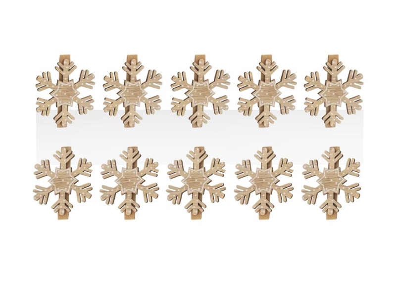 Vianočný, drevený, dekoračný štipec so snehovou vločkou, ktorým si môžete ozdobiť vianočný darček, blahoželanie alebo ho môžete pripevniť kdekoľvek inde a ozdobiť si ním interiér. Vyrobené z preglejky. BALENIE OBSAHUJE: - 10 ks štipcov (snehová vločka) Uvedená cena je za 1 balenie.