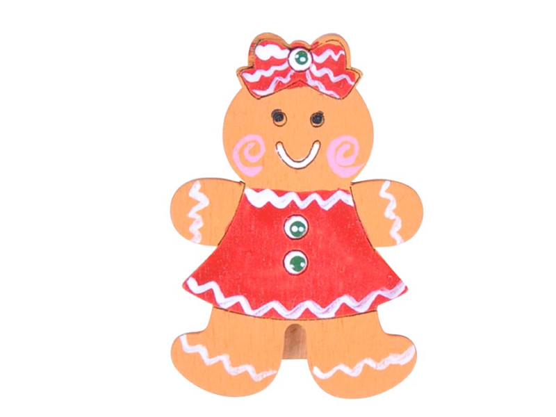 Drevený štipec s motívom vianočného perníka (dievčatko). Plánujete pred Vianocami stráviť tvorivé relaxačné popoludnie a vyzdobiť si byt? Potom určite neváhajte a kúpte si tieto krásne drevené dekorácie, ktoré navodia príjemnú vianočnú atmosféru. Môžete ich použiť na ozdobenie stromčeka, na vianočný veniec alebo na pripevnenie menovky na darček. Vyrobené z preglejky. Balenie obsahuje: - 18 ks štipcov (perníčky) Uvedená cena je za 1 balenie.