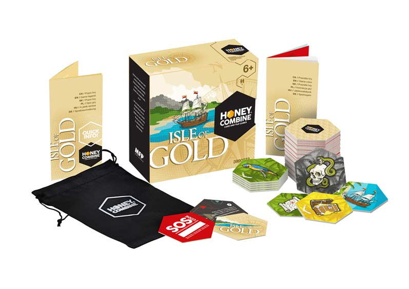 Zábavná stolová hra Honey Combine - ISLE OF GOLD Prekliaty ostrov... Veľa dobrodruhov túžilo po jeho objavení. Hovorí sa, že na ňom kapitán Kent ukryl tri truhlice so zlatým kráľovským pokladom, aby ho uchránil pred nájazdmi korzárov. Podľa legendy je však toto miesto príliš nebezpečné a i ten najodvážnejší potrebuje k nájdeniu pokladu more šťastia. Pravidlá hry: Pred začiatkom hry ISLE OF GOLD si obaja hráči vyberú svoje karty s loďou. Ostatné karty otočené obrázkami nadol premiešajú a na hracej ploche z nich poskladajú ostrov ľubovoľného tvaru. Vyskladané hracie karty by mali mať medzi sebou medzery, aby ich mohli hráči počas hry ľahko otáčať. Všetky políčka vytvoreného ostrova na seba musia nadväzovať najmenej jednou zo svojich šiestich hrán. Žiadny z hráčov nesmie tušiť, čo ktoré políčko ukrýva. Ostrov je objavený a hra začína. Hráči umiestnia svoje karty s loďou šípkami k políčkam, cez ktoré sa chystajú vstúpiť na pevninu. Losovaním si určia, ktorý z nich vykročí ako prvý. Následne sa obaja striedajú v jednotlivých ťahoch. Jedným ťahom sa rozumie obrátenie karty políčka, reakcia na jeho symbol a natočenie šípky smerom k ďalšiemu políčku, cez ktoré chce hráč v ďalšom ťahu pokračovať. Pokiaľ je hráčovi symbolom, uzatvorením alebo ukončením cesty znemožnený ťah na ďalšie políčko, musí vo svojom ďalšom ťahu premiestniť svoju kartu s loďou k inému, neprebádanému políčku ostrova. Víťazom hry ISLE OF GOLD sa stáva hráč, ktorý prejde nástrahami ostrova a ako prvý nájde dve z troch truhlíc so zlatým kráľovským pokladom. Vhodné pre deti od 6 rokov. Nebezpečenstvo vdýchnutia a prehĺtnutia malých častí. Stolová hra plná dobrodružstiev a náhody pre dvoch hráčov. Balenie obsahuje 28 hracích kariet, pravidlá hry, textilné vrecúško a servisný SOS kód. Uvedená cena je za 1 ks. Dodávame v krabičke.