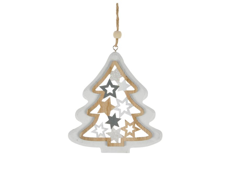 Štýlová drevená vianočná dekorácia v tvare vianočného stromčeka so závesom/ pútkom. Veľkosť 11,5 cm