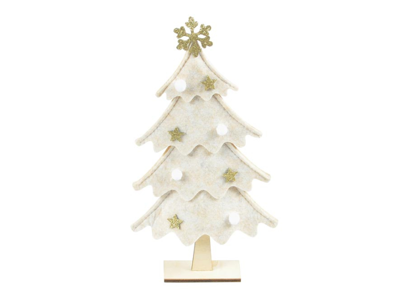 Filcový stromček, béžový. Krásna, vianočná dekorácia v dizajne béžového stromčeka, slúži ako dekorácia nielen v interiéri, ale aj v exteriéri. Táto krásna dekorácia navodí vianočnú atmosféru. Rozmery: 290 mm Uvedená cena je za 1 ks.