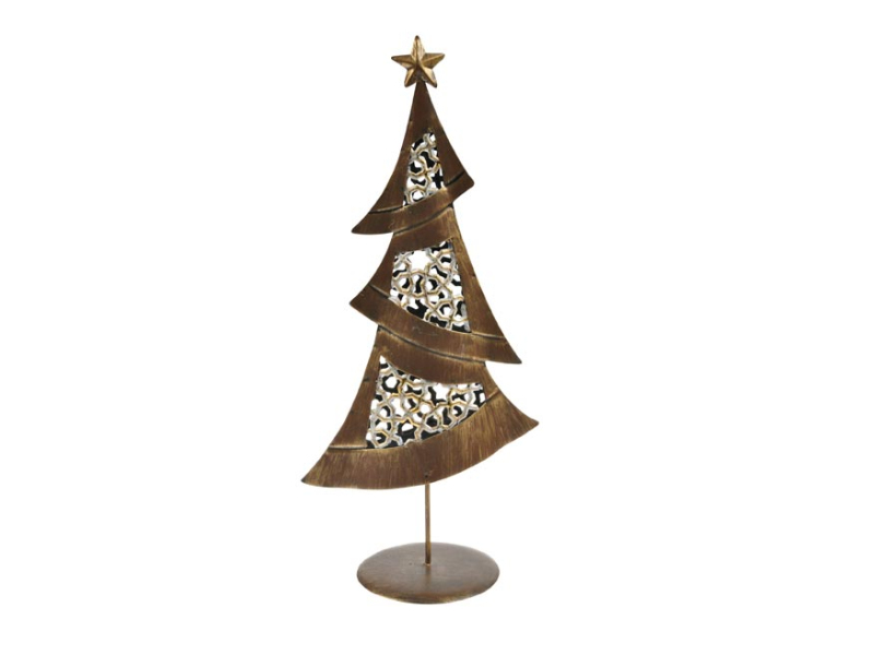 Stromček plechový – 37 cm, zlatý – s 3D efektom Vianočný stromček je vyrezávaný a má podstavec. Môže sa umiestniť na akúkoľvek plochu na skrášlenie miestnosti. Uvedená cena je za 1 ks.