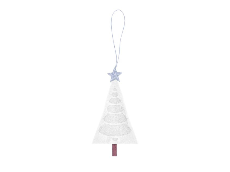 Dekorácia na vianočný stromček v bielej farbe s hviezdou na zavesenie. Krásny plstený závesný stromček so šnúrkou na zavesenie. Môžete ho zavesiť na stromček, do okna alebo na dvere. Skrášli váš interiér a umocní vianočnú atmosféru. Veľkosť: 65 mm Uvedená cena je za 1 ks.