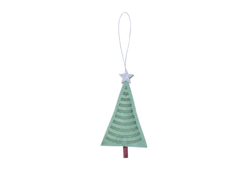 Dekorácia na vianočný stromček v zelenej farbe s hviezdou na zavesenie. Krásny plstený stromček so šnúrkou na zavesenie. Môžete ho zavesiť na stromček, do okna alebo na dvere. Skrášli váš interiér a umocní vianočnú atmosféru. Veľkosť: 65 mm Uvedená cena je za 1 ks.