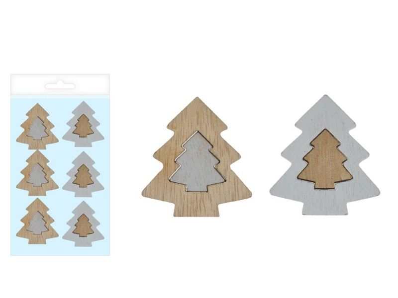 Drevený vianočný stromček. Dodávame po 6 ks v dvoch inverzných motívoch.
