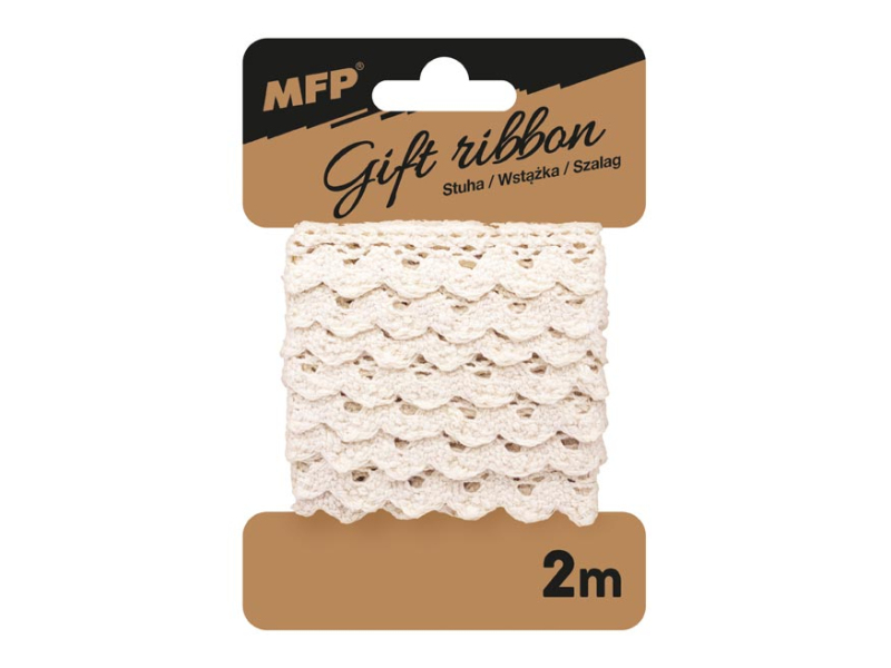 Čipková, bavlnená stuha béžovej farby. Je vhodná na svadobné dekorácie, ručné šitie, zdobenie odevov, balenie darčekov alebo viazanie kvetov. Čipkovaná stuha je opakovane použiteľná. Dĺžka: 2 m Farba: béžová Uvedená cena je za 1 ks.