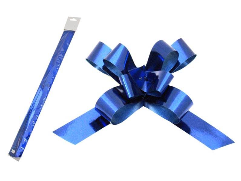 Sťahovacia stuha v metalickej modrej farbe. Sťahovacie stuhy sú vhodné na ozdobenie darčekov. Jednoduchým zatiahnutím za konce stuh, vytvoríte nádherný ozdobný kvet alebo mašľu. Šírka: 20 mm Balenie: 50 ks Farba: modrá Dĺžka: 500 mm Všetkých 50 ks je balených v sáčku so závesom. Uvedená cena je za 1 ks.