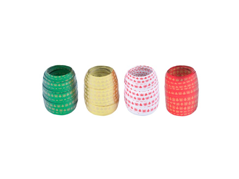 Viazacia stuha s potlačou snehových vločiek a stromčekov v kombinácii farieb je ideálna na dodanie farebného nádychu vašim darčekom a dekoráciám. Štýlové vianočné vzory dodajú vašim balíkom elegantný a tematický vzhľad, ktorý je ideálny na Vianoce a iné zimné oslavy. Vynikajúca voľba pre tých, ktorí chcú svojim darčekom dodať špeciálny a osobitý vzhľad. Pretiahnutím koncov stuhy cez nožnice môžete vytvoriť krásne kučery a stuhu rôzne stočiť. Takto bude váš darček krásne naaranžovaný. Dĺžka: 10 m Balenie: 30 ks Šírka: 10 mm Farba: zelená, zlatá, biela, červená Všetkých 30 ks je zabalených vo vrecku. Dodávame v mixe farieb podľa skladových zásob. Uvedená cena je za 1 ks.