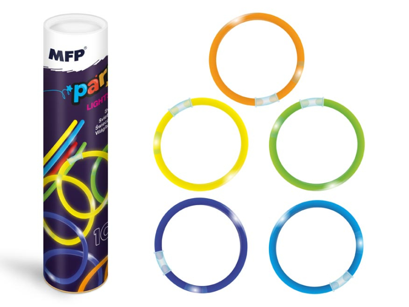 Rôznofarebné svietiace tyčinky 20 cm, ktoré sa dajú spájať. NÁVOD NA POUŽITIE Tyčinku ohnete, spojte do kruhu a potraste. Tyčinku neprepichujte, nelámte, ani ináč nedeformujte. Nedávajte do úst, nehryzte, tekutinu nepite! Tekutina je netoxická, zdraviu neškodná, ale pri vniknutí do očí môže dráždiť. V takom prípade si dôkladne prepláchnite oči čistou vodou. VAROVANIE: Nevhodné pre deti do 3 rokov, nebezpečenstvo prehltnutia malých častí. Odporúčaný vek je od 5 rokov. Pri používaní deťmi je nevyhnutný trvalý dozor dospelej osoby- Uvedená cena je za 1 balenie.