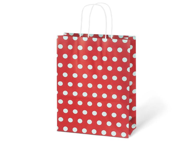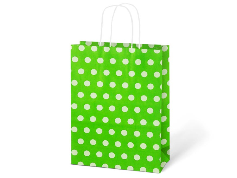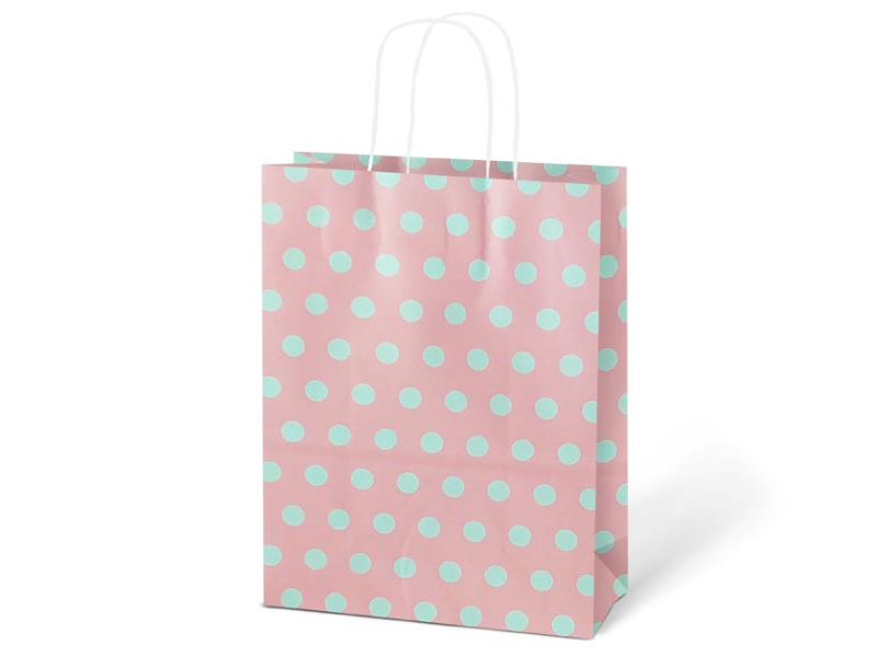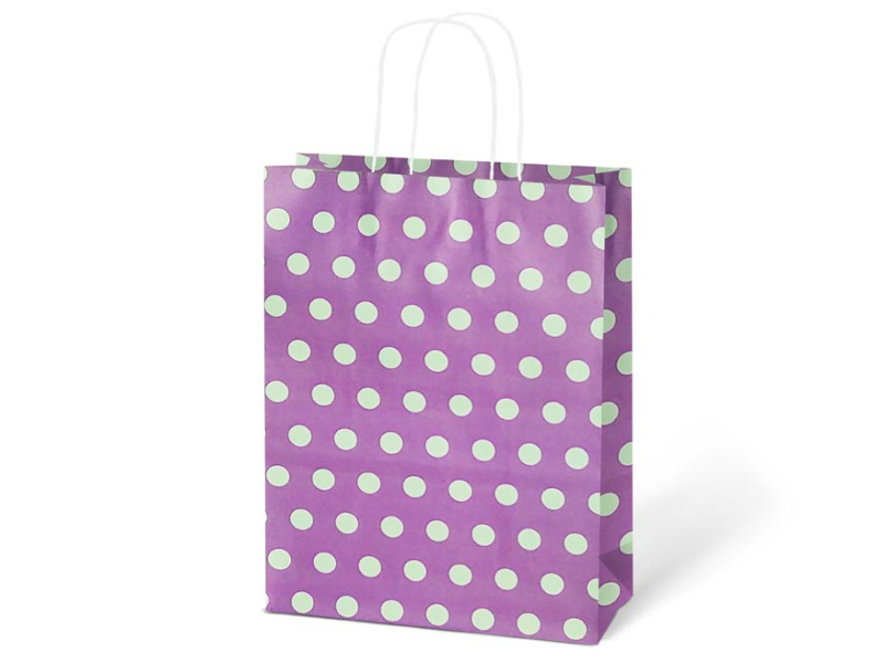 Papierová darčeková taška KRAFT M s potlačou bodiek. Je vyrobená z pevného kraftového papiera, vďaka ktorému je odolná proti pretrhnutiu. Taška má krútené papierové uši. Pokiaľ nemáte čas baliť darček do darčekového baliaceho papiera tak práve pre Vás máme široký výber darčekových tašiek. Motív: bodky Materiál: kraftový papier Rozmery: 245 x 310 x 105 mm Farba: červená, zelená, fialová, tyrkysová, modrá, ružová Dodávame v mixe po 6 ks podľa skladovej zásoby. Uvedená cena je za 1 ks.