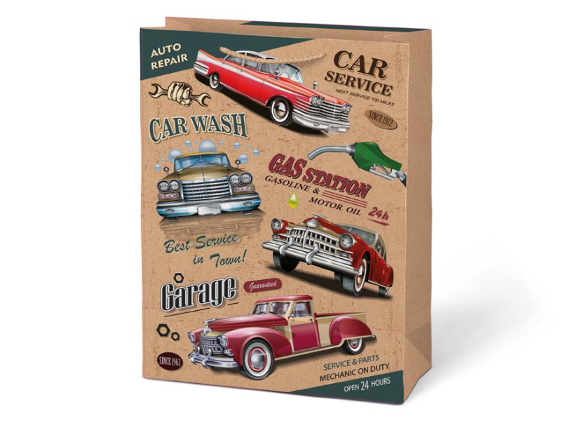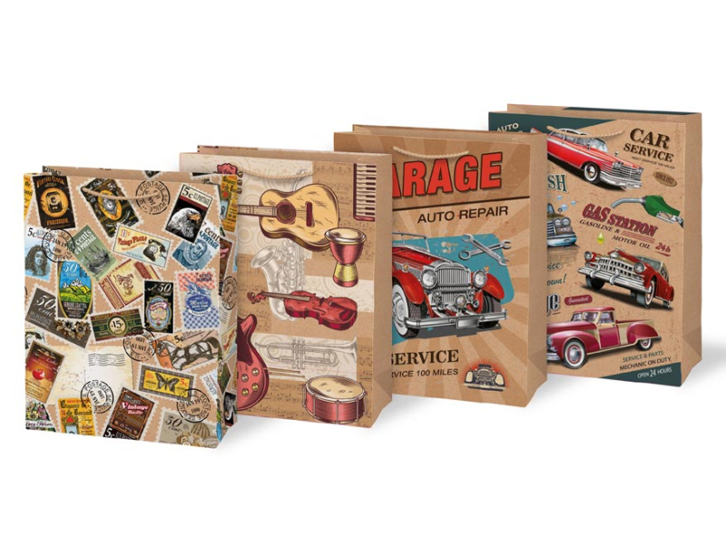 Darčeková taška L KRAFT z pevného kraftového papiera s farebnou potlačou. Taška má pletené textilné uši a kartičku kam môžete napísať meno alebo krátke venovanie. Pokiaľ nemáte čas baliť darček do darčekového baliaceho papiera tak práve pre Vás máme široký výber darčekových tašiek. MOTIV: - známky - auto veterán - auto veteráni - hudobné nástroje Farba: hnedá/prírodná Materiál: kraftový papier Rozmer: 260 x 340 x 140 mm Dodávame v mixe po 4 ks podľa skladovej zásoby. Uvedená cena je za 1 ks.