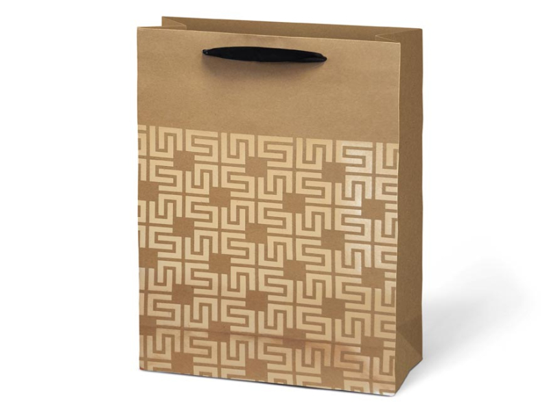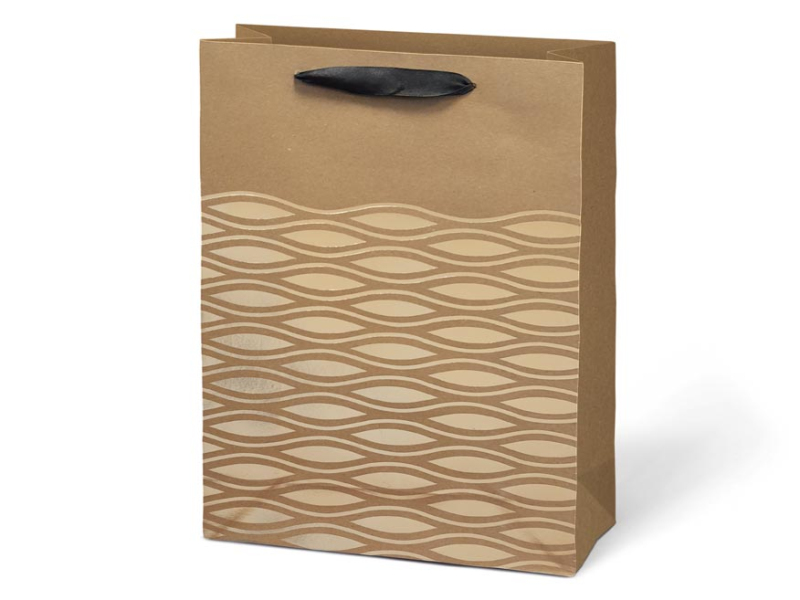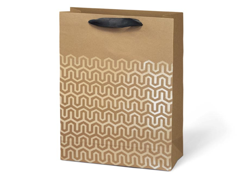 Darčeková taška L KRAFT z pevného kraftového papiera s uchami z čiernej stuhy v mixe zlatých motívov. Krásny design zaručí spokojnosť obdarovaného. Pokiaľ nemáte čas baliť darček do darčekového baliaceho papiera tak práve pre Vás máme široký výber darčekových tašiek. Farba: hnedá/prírodná Materiál: kraftový papier Motív: mix zlatých motívov Rozmer: 225 x 335 x 100 mm Dodávame v mixe po 4 ks podľa skladovej zásoby. Uvedená cena je za 1 ks.