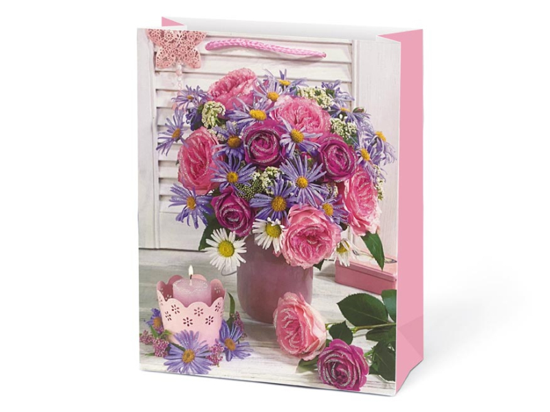 Darčeková taška L LUX s motívmi kvetov. Každý darček musí byť do niečoho zabalený. Ak nemáte čas zabaliť ho do baliaceho papiera, máme pre vás na výber rôzne darčekové tašky. Taška má pevné držadlo na jednoduché prenášanie a štítok na napísanie mena alebo želania. Motív: kytica Rozmery: 260 x 320 x 100 mm Dodáva sa v mixe 4 ks podľa skladových zásob. Uvedená cena je za 1 ks.