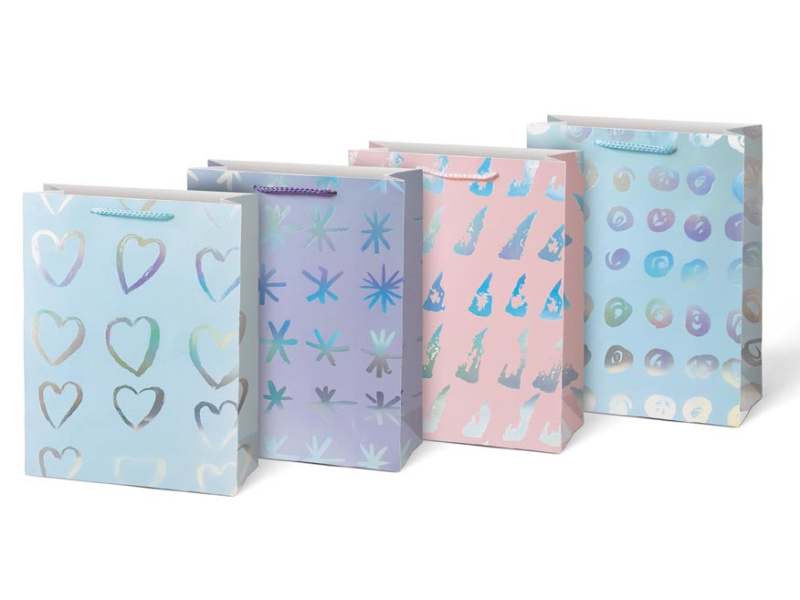 Farebná darčeková papierová taška L LUX v kombinácii motívov a farieb. Taška je vybavená pevným držadlom na jednoduché prenášanie a kartičkou, na ktorú môžete napísať svoje meno alebo krátke venovanie. Darčekové tašky sú skvelé na darčeky, ktoré sa ťažko balia do baliaceho papiera. Sú tiež veľmi praktické pre tých, ktorí neradi balia darčeky alebo to nevedia robiť a neboli by s výsledkom spokojní. Veľkosť: 225 x 335 x 100 mm Farba: 2 x svetlomodrá, fialová, ružová Motív: srdiečka, hviezdičky, trojuholníky, bodky Dodávame v mixe 4 ks podľa skladových zásob. Cena je za 1 ks.