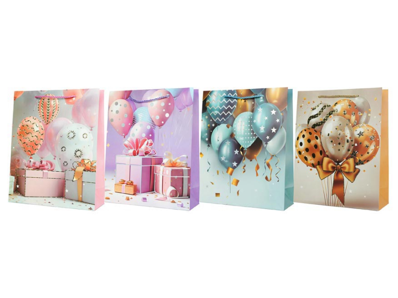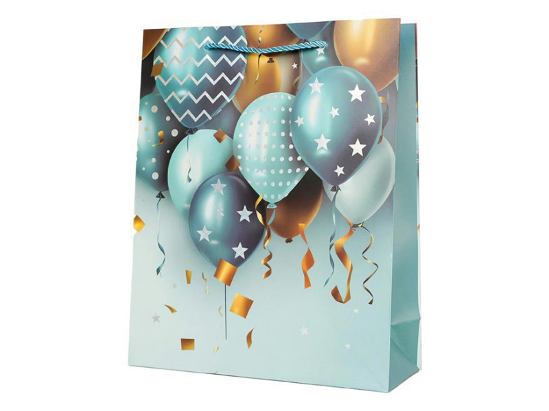 Darčeková papierová taška L LUX v kombinácii farieb s motívom nafukovacích balónov. Taška je vybavená pevným uchom na jednoduché prenášanie a kartičkou, na ktorú môžete napísať svoje meno alebo krátke venovanie. Ak nemáte čas zabaliť darček do darčekového papiera, máme široký výber darčekových tašiek práve pre vás. Motív: nafukovacie balóny Rozmer: 265 x 325 x 135 mm Dodávame v mixe 4 ks podľa skladových zásob. Uvedená cena je za 1 ks.