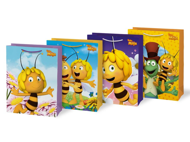 Papierová taška darčeková s detským motívom z rozprávky Včielka Maja. Každý darček musí byť v niečom zabalený. Ak nemáte čas baliť ho do baliaceho papiera, máme pre vás na výber najrôznejšie darčekové tašky. Taška má pevné ucho pre ľahšie prenášanie a štítok na napísanie mena a blahoželania. Motív: Včielka Maja Povrchová úprava: UV lak Rozmer: 260 x 340 x 140 mm Dodávame v mixe po 4 ks podľa skladových zásob. Uvedená cena je za 1 ks.