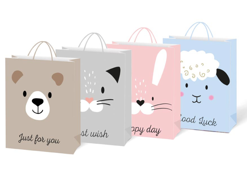 Farebná, darčeková, papierová taška M LUX s motívom tváre zvieratka. Taška je zabezpečená pevným uchom pre lepšie nosenie a kartičkou kam si môžeme napísať meno alebo krátke venovanie. Darčekové tašky sú skvelé na darčeky, ktoré iba ťažko zabaliť do baliaceho papiera. Veľmi praktické sú preto pre tých, čo darčeky neradi balia alebo to moc nevedia a neboli by spokojní so svojim výsledkom. Farba: hnedá, šedá, ružová, modrá Motív: tvár zvieratka Rozmer: 180 x 240 x 80 mm Dodávame v mixe po 4 ks podľa skladových zásob. Uvedená cena je za 1 ks.