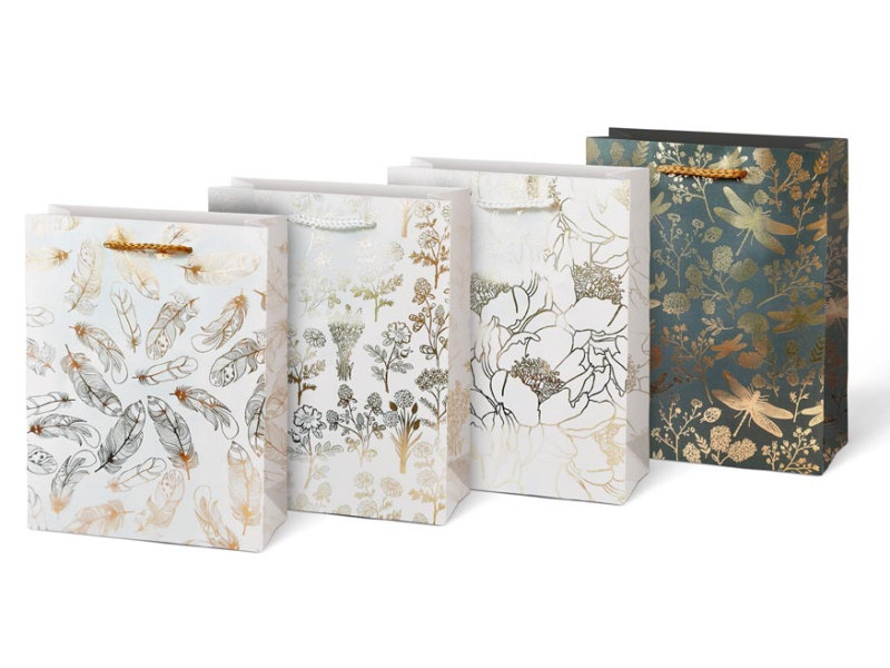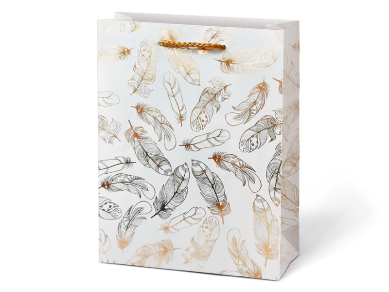 Darčeková, papierová taška M LUX s kombináciou motívov. Taška je vybavená pevným držadlom na jednoduché prenášanie a kartičkou, na ktorú môžete napísať svoje meno alebo krátke venovanie. Darčekové tašky sú skvelé na darčeky, ktoré sa ťažko balia do baliaceho papiera. Sú tiež veľmi praktické pre tých, ktorí neradi balia darčeky alebo nevedia, ako na to, a s výsledkom by neboli spokojní. Farba: biela, čierna Rozmer: 180 x 230 x 90 mm Motív: pierka, rastliny, kvety, vážky Dodávame v mixe 4 ks podľa skladových zásob. Cena je uvedená za 1 ks.