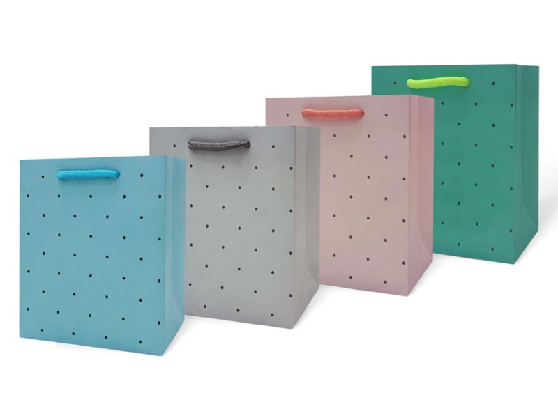 Farebná darčeková papierová taška s bodkami. Darčekové tašky sú skvelé na darčeky, ktoré sa dajú len ťažko zabaliť do baliaceho papiera. Veľmi praktické sú aj pre tých, čo neradi balia darčeky, lebo to veľmi nevedia a neboli by spokojní s výsledkom. Uvedená cena je za 1 ks.