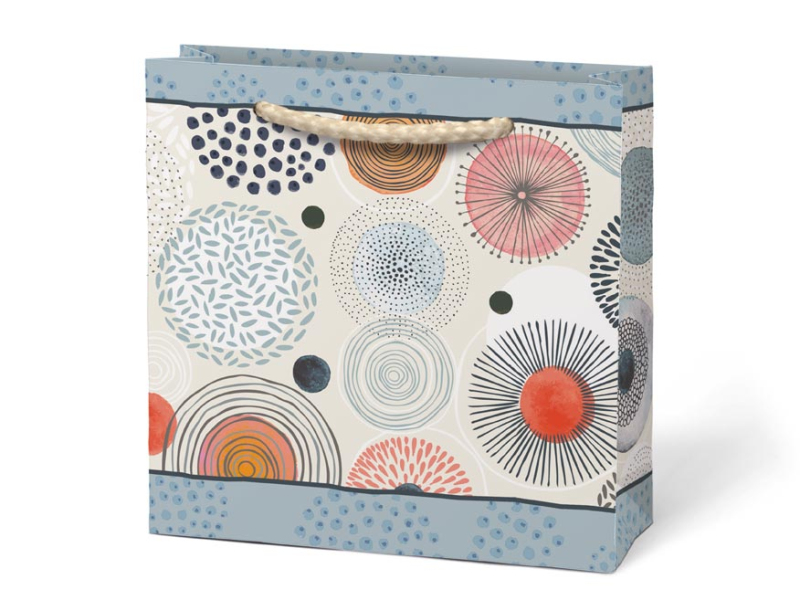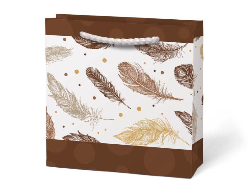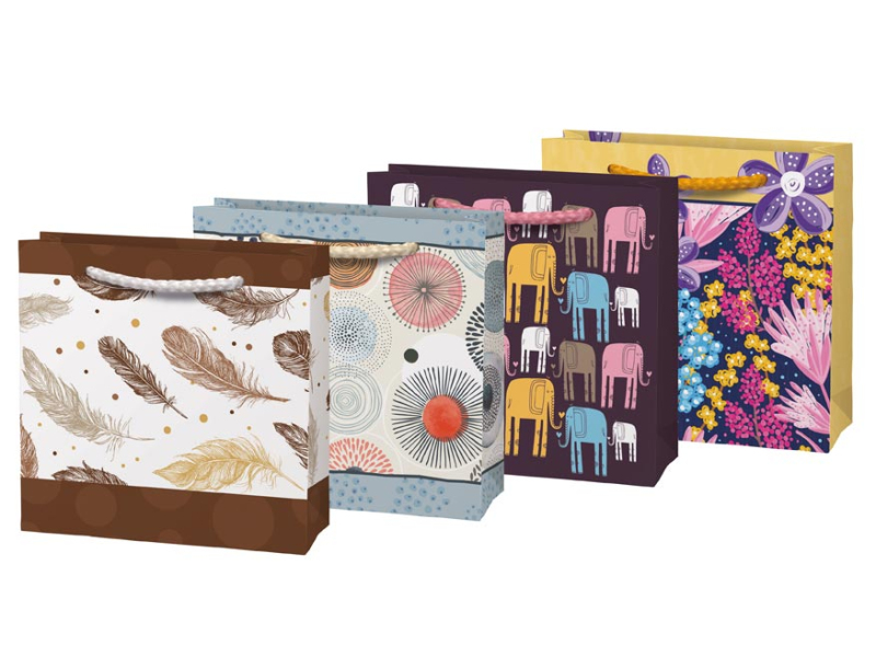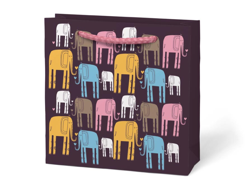 Papierová, darčeková taška. Každý darček by mal byť v niečom zabalený. Ak nemáte čas zabaliť ho do baliaceho papiera, máme pre vás na výber najrôznejšie druhy darčekových tašiek. Taška má pevné ucho na ľahšie prenášanie a štítok na napísanie mena a na želanie. MOTÍVY: - perie - slony - kvety - kruhy Rozmer: 90 x 90 x 40 mm Dodávame v mixe po 4 ks podľa skladových zásob. Uvedená cena je za 1 ks.