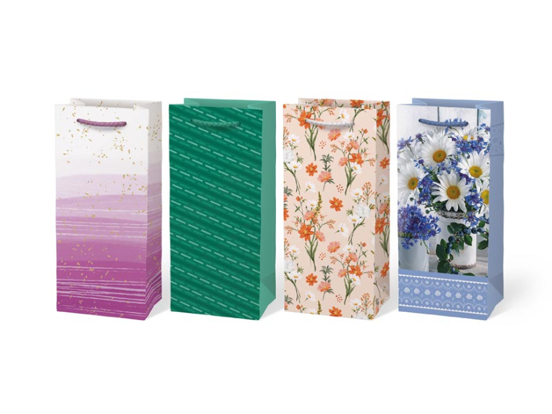 Papierová darčeková taška T3 v rôznych motívoch a farbách. Taška je vybavená držadlami na jednoduché prenášanie a je vhodná na rôzne príležitosti, ako sú narodeniny, sviatky, svadby alebo iné výnimočné udalosti. Pohodlné rukoväte sú vyrobené z pevného materiálu, ktorý zabezpečuje ľahké prenášanie. Ukážte svojim blízkym, že vám na nich záleží, výberom elegantných a štýlových tašiek, ktoré zjednodušujú balenie. Motív: mix motívov Rozmery: 100 x 220 x 55 mm Dodávame v mixe 4 motívov podľa skladových zásob. Uvedená cena je za 1 ks.