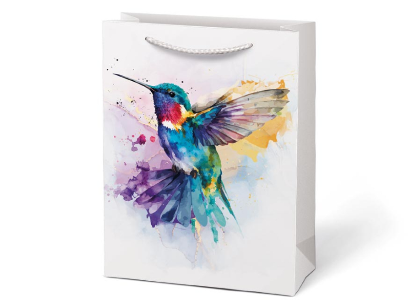 Krásna, darčeková taška T4 s potlačou. Taška má pevné držadlo na jednoduché prenášanie a kartičku, na ktorú môžete napísať svoje meno alebo krátke venovanie. Ak nemáte čas zabaliť darček do darčekového papiera, máme široký výber darčekových tašiek práve pre vás. MOTÍV: - kolibrík - pruhy - farebné - listy Ginko biloba Rozmery: 190 x 250 x 90 mm Dodávame v mixe 4 ks podľa skladových zásob. Uvedená cena je za 1 ks.
