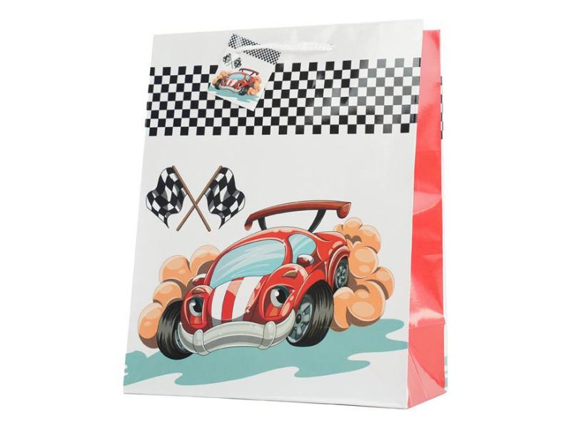 Papierová darčeková taška T4 s detskými motívmi. Taška je vybavená pevným uchom na jednoduché prenášanie a kartičkou, na ktorú môžete napísať svoje meno alebo krátke venovanie. Ak nemáte čas zabaliť darček do darčekového papiera, máme široký výber darčekových tašiek práve pre vás. MOTÍV: - mačka - dievčatá - pretekárske auto Rozmer: 180 x 230 x 100 mm Dodávame v mixe 3 ks podľa skladových zásob. Uvedená cena je za 1 ks.